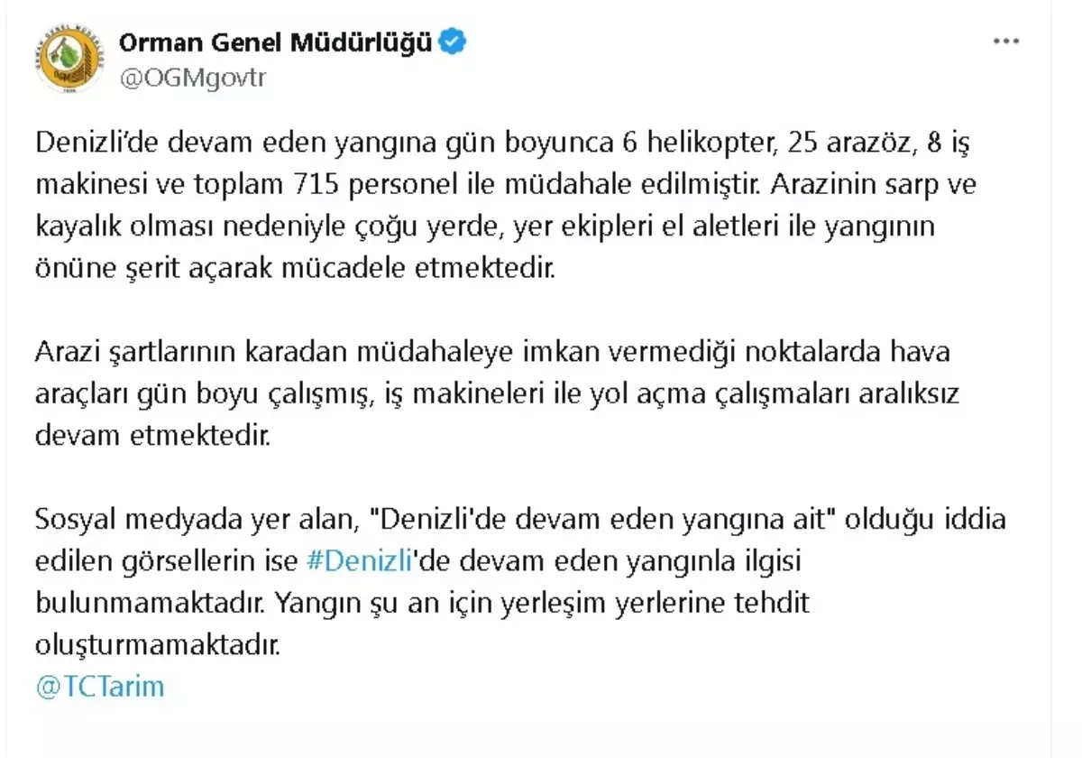 Denizli Yangınına Hızlı Müdahale